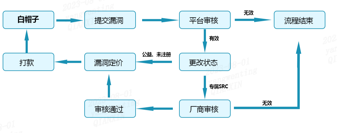 漏洞提交后补天先进行审核,一般是1个工作日左右会完成,审核通过厂商进行复审,一般情况下厂商会在一周内审核完成,若无异议进行奖金的发放。若超过一周厂商仍未审核,正常情况下则自动判定为审核通过,奖金确认后7个工作日左右会到账。